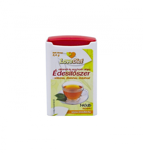 Love Diet édesítőszer tabletta ciklamát és szacharin alapú.