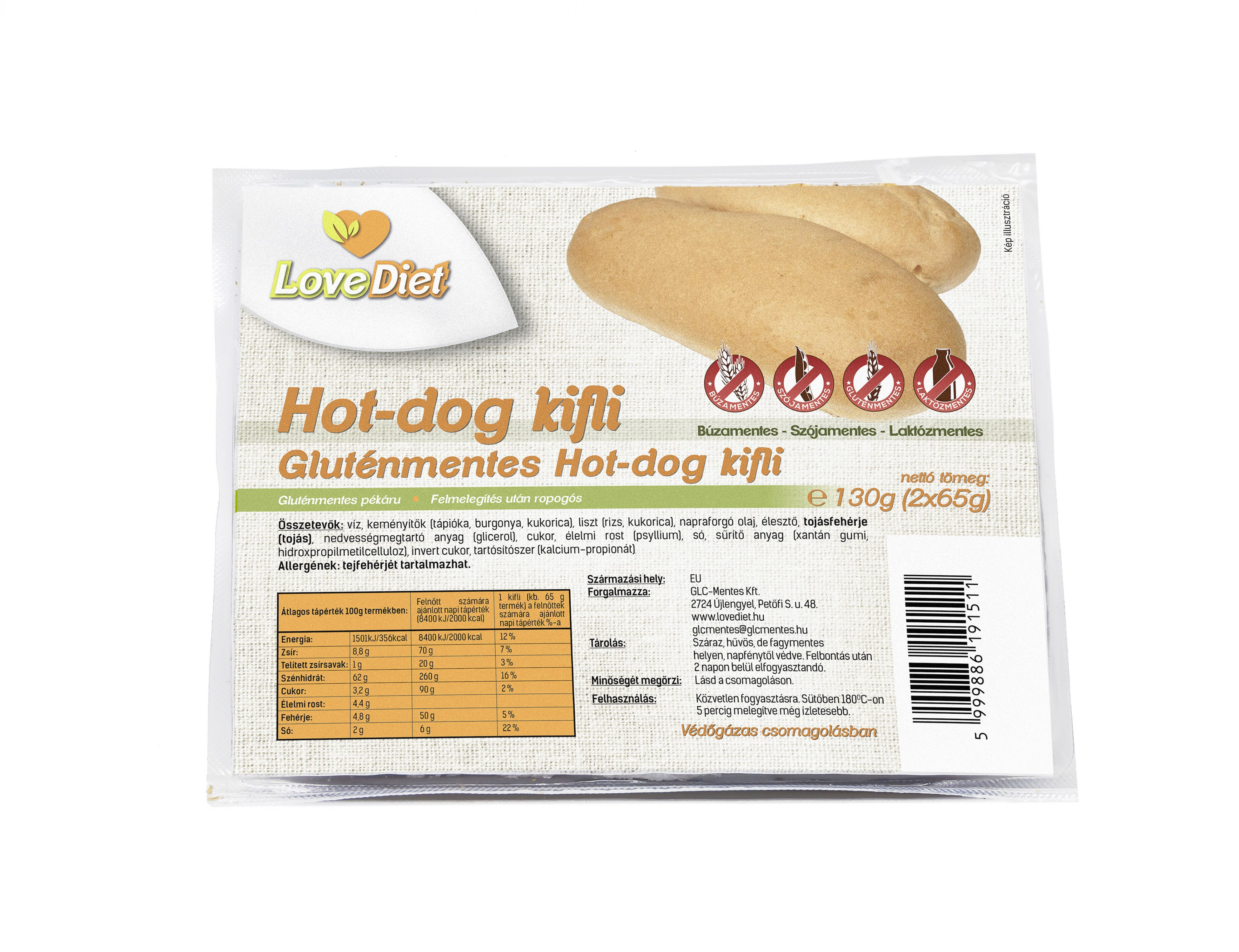 Love Diet gluténmentes Hot-dog kifli 130g (2x65g)