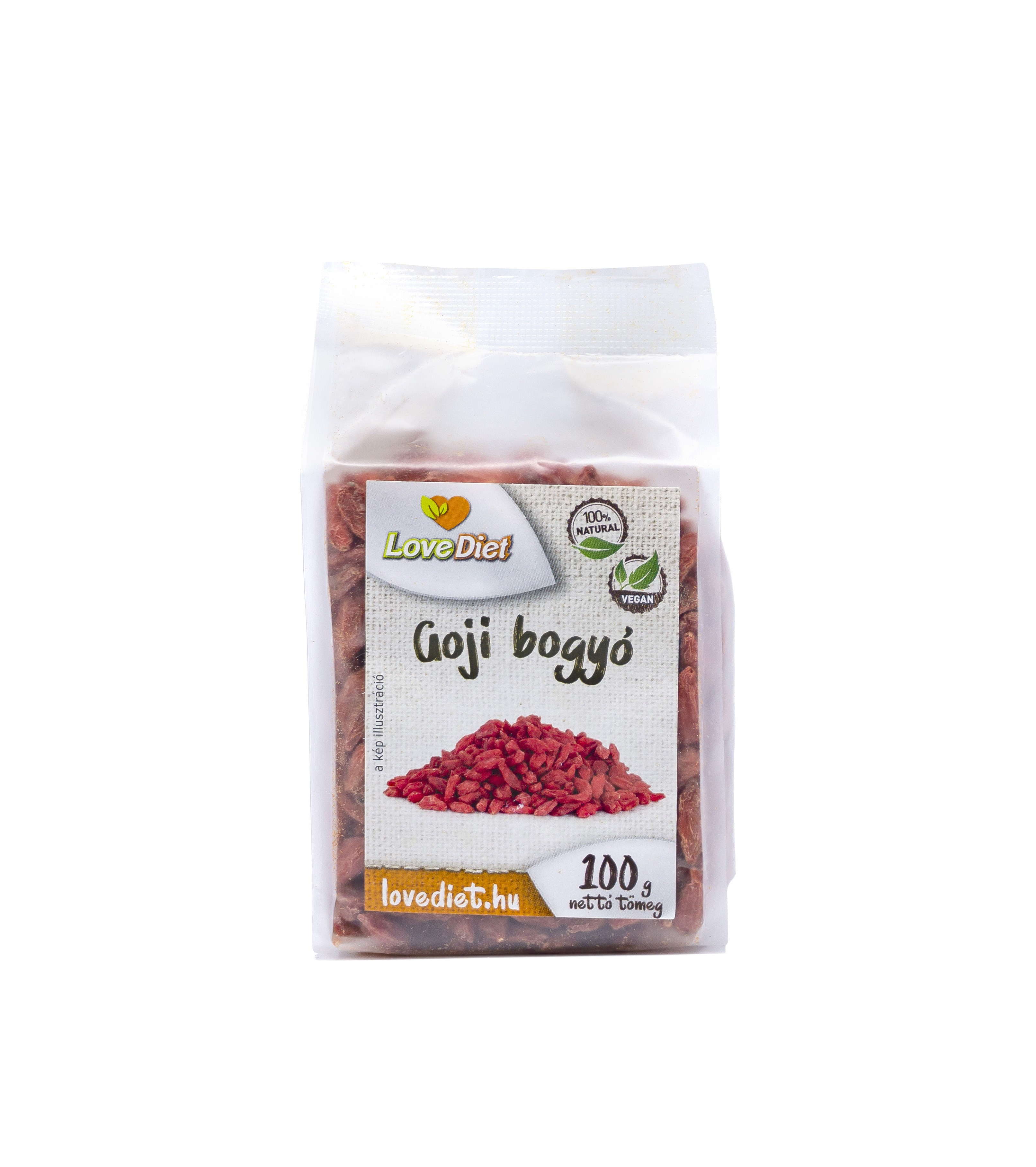 A Love Diet Goji bogyó (farkasbogyó) a világon a második legtöbb C-vitamint tartalmazó gyümölcs a világon. Magas az antioxidáns és réz tartalma. Ajánlott napi mennyiség felnőtteknek maximum 20-30 g.